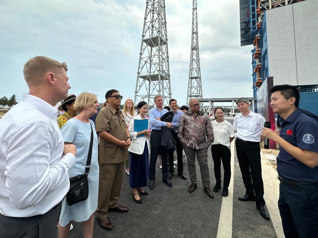 圖為駐華使節(jié)在海南國際商業(yè)航天發(fā)射中心聽講解。新華社記者 袁睿 攝