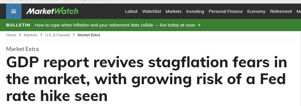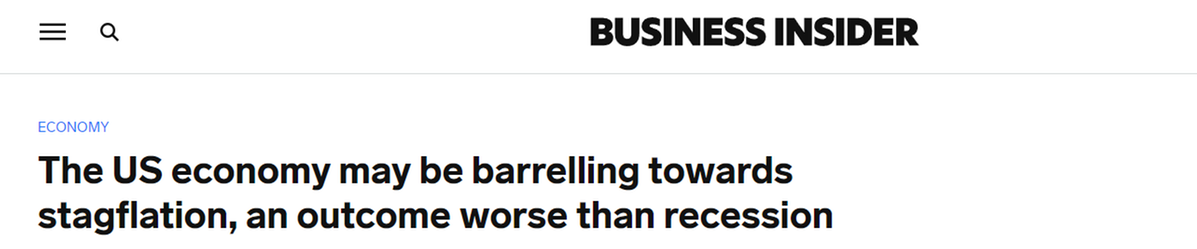 美國財經(jīng)新聞網(wǎng)站市場觀察25日報道稱,近期的美國經(jīng)濟數(shù)據(jù)給交易員、經(jīng)濟學(xué)家和其他人士敲響了警鐘,他們開始表達對這個世界最大經(jīng)濟體或?qū)⑾萑霚浀膿鷳n。滯脹是通脹上升和經(jīng)濟增長放緩的結(jié)合,被美聯(lián)儲政策制定者視為所有可能結(jié)果中最糟糕的,因為它比經(jīng)濟衰退更難解決。