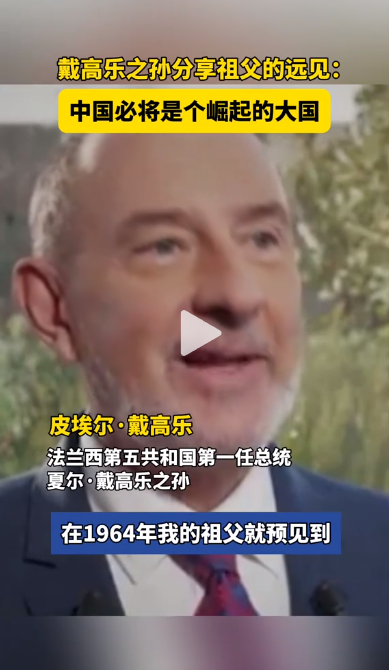 戴高樂之孫分享祖父對(duì)中國(guó)發(fā)展的遠(yuǎn)見:必將崛起的大國(guó)