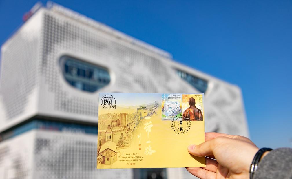 2023年12月28日,塞爾維亞郵政局在貝爾格萊德中國文化中心發(fā)行兩套中國主題郵票,紀(jì)念“一帶一路”倡議提出十周年,同時(shí)展示中國的文化與自然遺產(chǎn)。圖為當(dāng)天在貝爾格萊德拍攝的中國主題郵票。新華社發(fā)(王韡攝)