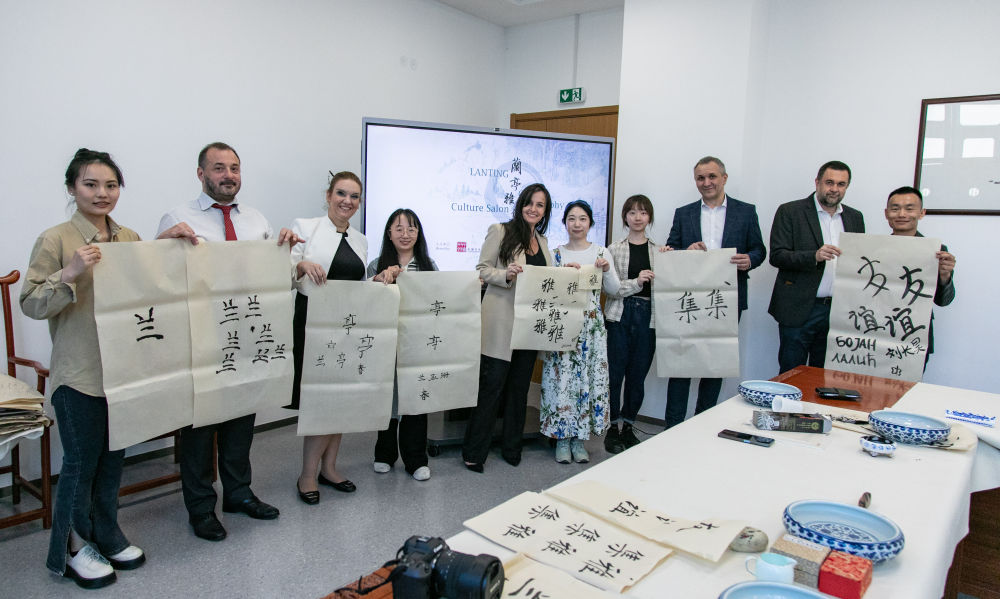 2024年4月11日,在貝爾格萊德中國(guó)文化中心舉辦的“蘭亭雅集——書(shū)法文化體驗(yàn)”活動(dòng)。