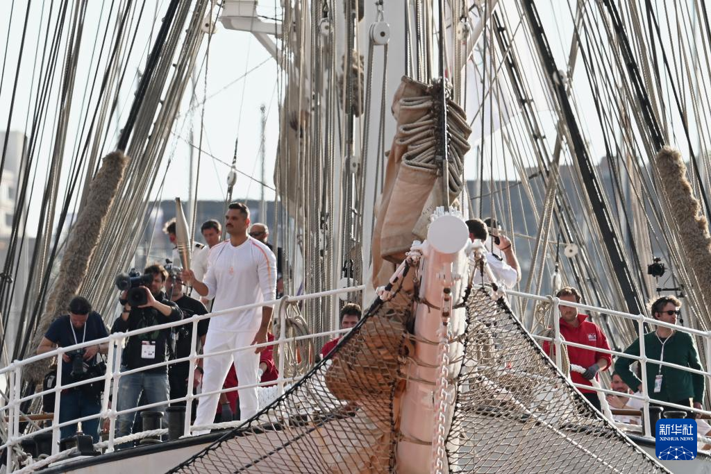 ??在“貝勒姆”號(hào)靠岸后,馬賽交響樂(lè)團(tuán)開(kāi)始演奏巴黎奧運(yùn)會(huì)主題曲《巡游盛典》。約19時(shí)30分,2012年倫敦奧運(yùn)會(huì)游泳冠軍弗洛朗·馬諾杜作為在法國(guó)本土的第一棒火炬手,手持火炬從“貝勒姆”號(hào)上走下,象征著奧運(yùn)火種正式登陸法國(guó)。