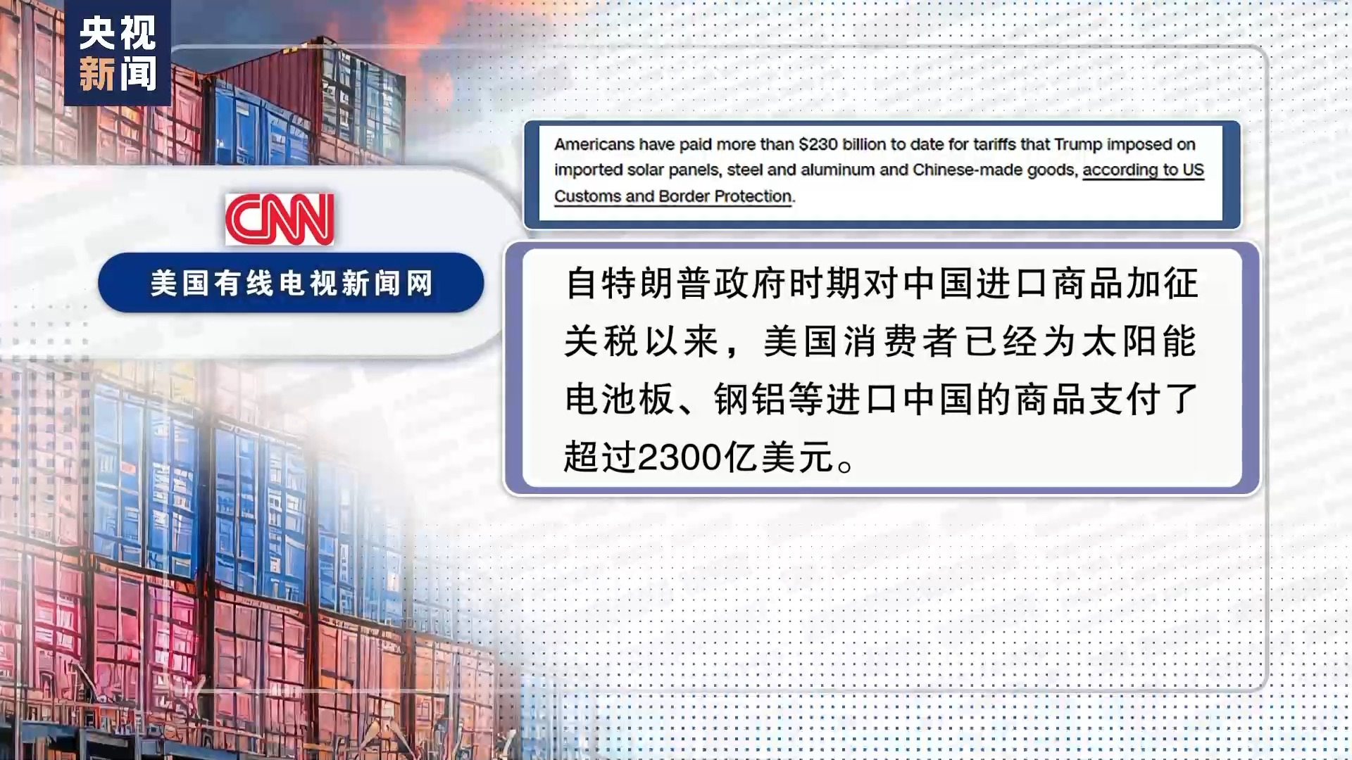 事實(shí)證明,美國保護(hù)主義措施無一例外只是“回旋鏢”式的自傷游戲。據(jù)美國有線電視新聞網(wǎng)3月引用美國海關(guān)及邊境保護(hù)局?jǐn)?shù)據(jù),自特朗普政府時期對中國進(jìn)口商品加征關(guān)稅以來,美國消費(fèi)者已經(jīng)為太陽能電池板、鋼鋁等進(jìn)口中國的商品支付了超過2300億美元。