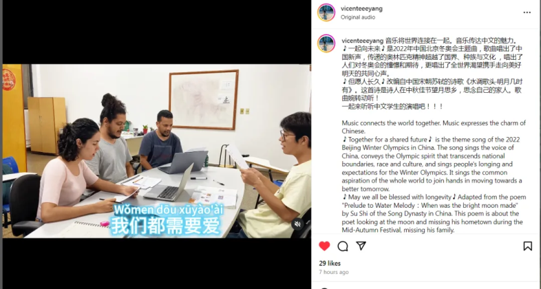 來(lái)自老撾的楊世群、菲律賓的黃玉潔、布隆迪的田曉慧和墨西哥的楊衍輝等老師,還分享了各種學(xué)習(xí)中文的有趣方法,例如情景演繹、唱歌學(xué)中文、跟讀練習(xí),獲得了網(wǎng)友們的一致好評(píng)。