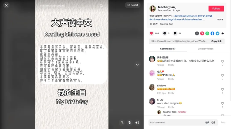 同時(shí),眾多海外外籍博主也積極參與活動(dòng),分享他們與中文的美好緣分。美國(guó)博主Kyle Strickland通過(guò)情景演繹的形式分享學(xué)習(xí)中文的獨(dú)特方法,印度尼西亞籍中文老師Angelica的趣味中文小課堂更是收獲無(wú)數(shù)“催更”。