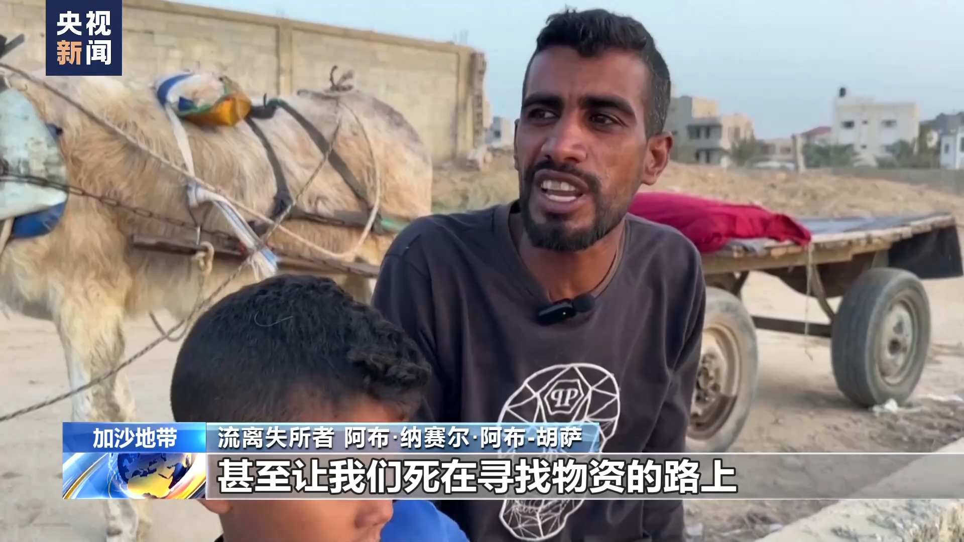 流離失所者 阿布·納賽爾·阿布-胡薩:我們明天還會(huì)來這里,看看能不能領(lǐng)到援助物資,幫助我和孩子們活下去。