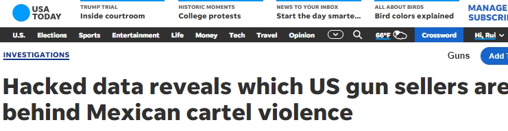 據(jù)《今日美國報》網(wǎng)站(USA Today)日前報道,此前墨西哥軍方情報遭到大規(guī)模泄露,其中涉及二十年來首次曝光的與從邊境南部收繳的7.8萬支槍有關(guān)的信息,包括與之相關(guān)的美國槍支商店、走私者以及販運(yùn)槍支的類型。