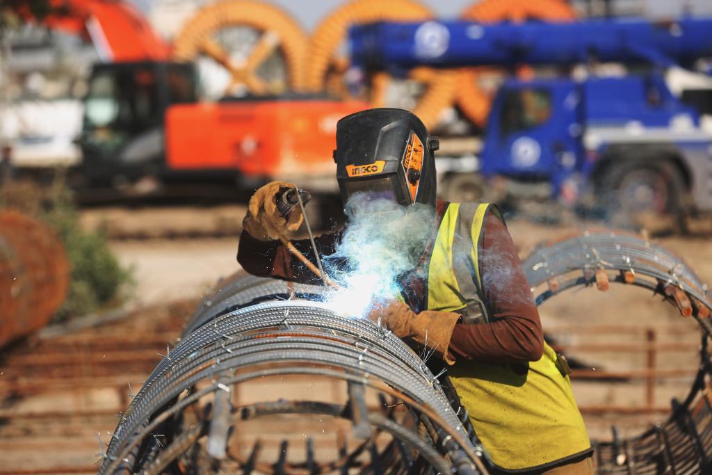 3月2日,一名中方員工在伊拉克巴格達尼蘇爾立體交通樞紐項目現場施工作業(yè)。新華社發(fā)(哈利勒·達伍德攝)
