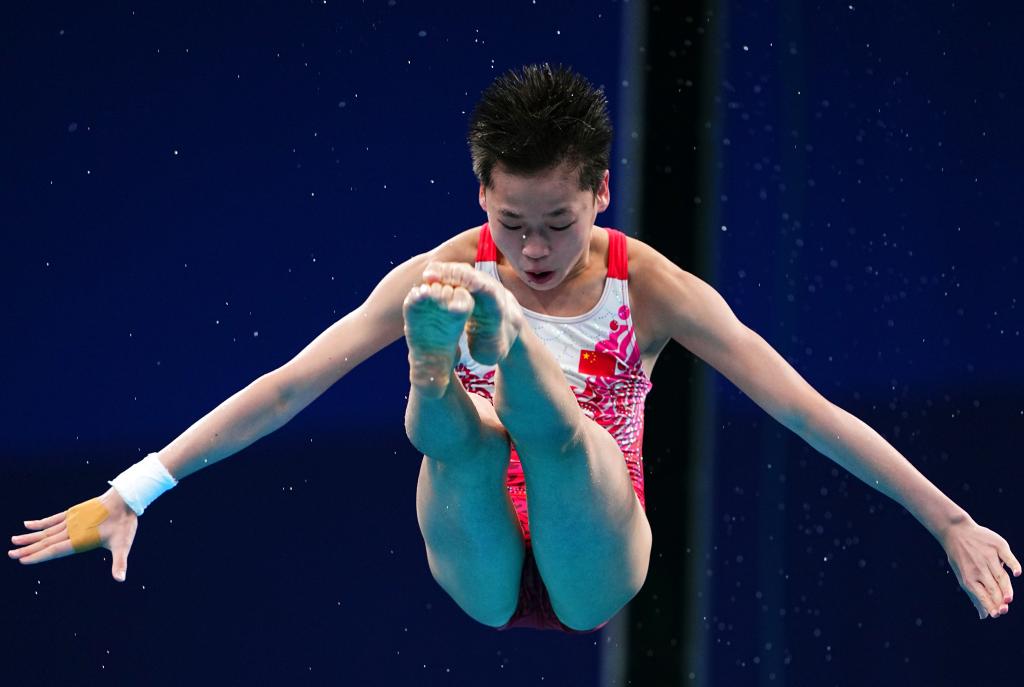 2021年8月5日,中國選手全紅嬋在比賽中。新華社記者 許暢 攝