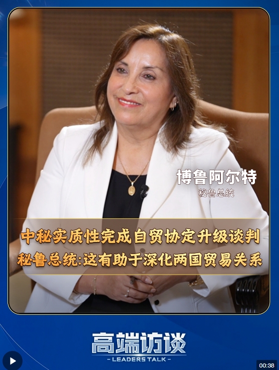 6月28日,中國(guó)與秘魯宣布實(shí)質(zhì)性完成自貿(mào)協(xié)定升級(jí)談判。秘魯總統(tǒng)博魯阿爾特在接受總臺(tái)《高端訪談》專(zhuān)訪時(shí)表示,中國(guó)是秘魯?shù)谝淮筚Q(mào)易伙伴,兩國(guó)新簽署的諒解備忘錄,將有助于深化兩國(guó)貿(mào)易關(guān)系,進(jìn)一步加強(qiáng)雙邊關(guān)系。