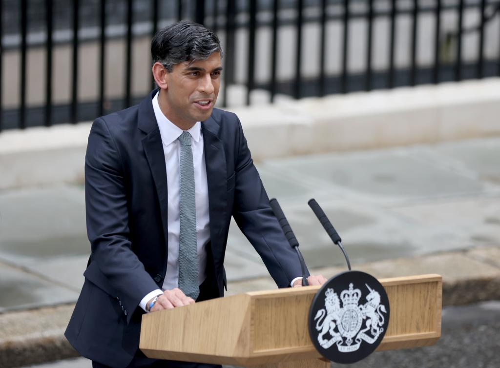7月5日,蘇納克在英國倫敦唐寧街10號首相府前對媒體發(fā)表講話。新華社記者李穎攝