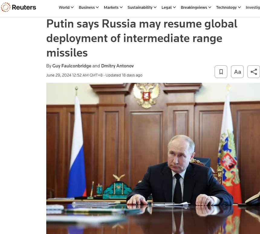 俄方不止一次發(fā)布消息說,美國的陸基中導系統(tǒng)已經出現在歐洲的軍事訓練中。俄總統(tǒng)普京上月底曾警告,作為對美國敵對行動的回應,莫斯科可能會恢復陸基中導的生產和全球部署。