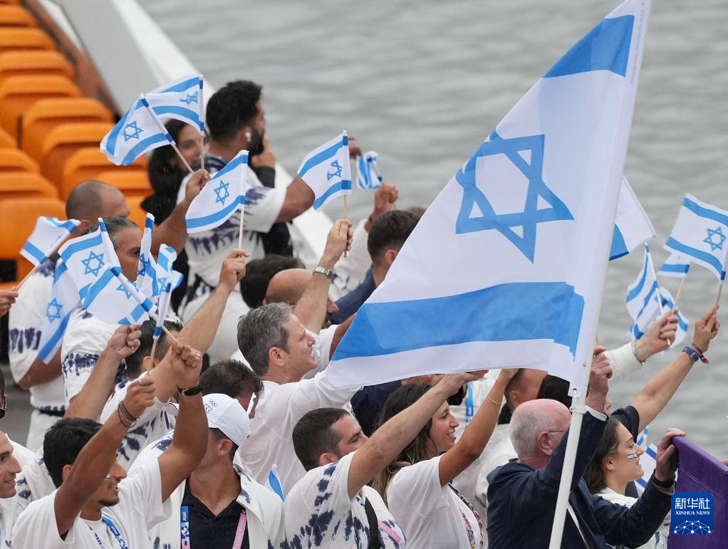 7月26日,以色列體育代表團(tuán)在開幕式上。新華社記者萬象攝