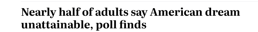 位于哥倫比亞特區(qū)的公共政策中心阿奇布里奇研究所(Archbridge Institute)在2023年7月的一份調(diào)查報(bào)告中稱(chēng),接受調(diào)查的24%的成年人表示,美國(guó)夢(mèng)對(duì)他們來(lái)說(shuō)“遙不可及”,這一比例高于2022年的18%。