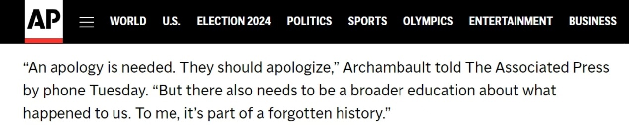 “道歉是必要的,他們應該道歉。而我們也需要對發(fā)生在我們身上的事情進行更廣泛的教育。對我來說,這是一段被遺忘的歷史?!?/p>