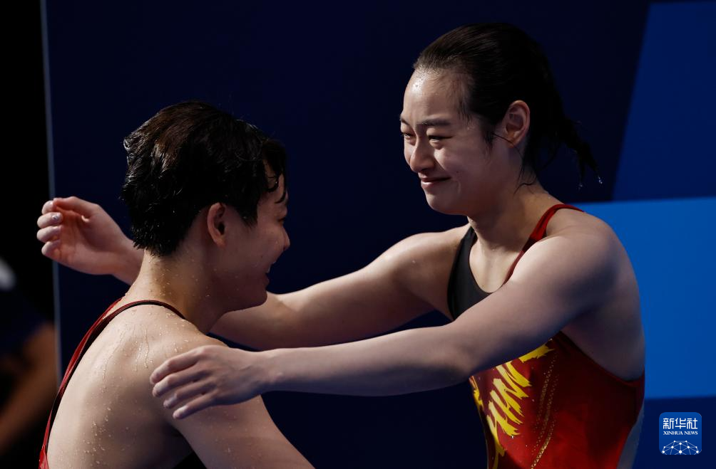 8月9日,中國(guó)選手陳藝文(右)在比賽后。新華社記者 王鵬 攝