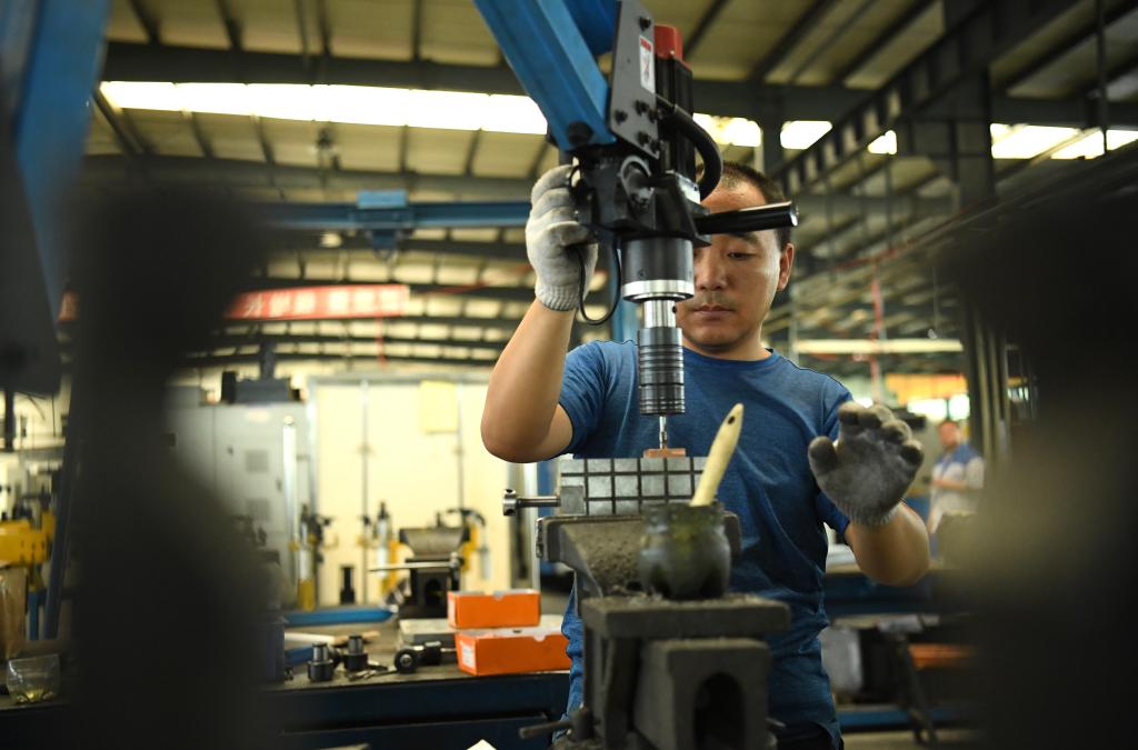 2024年7月30日,在長春吉林通用機(jī)械(集團(tuán))有限責(zé)任公司模具裝配生產(chǎn)線,鉗工在進(jìn)行攻絲操作。近年來,吉林通用機(jī)械(集團(tuán))有限責(zé)任公司通過數(shù)字化改造、智能化升級提高生產(chǎn)效率,提升產(chǎn)業(yè)競爭力,已成為全球鋁加工汽車輕量化零部件知名供應(yīng)商,為奧迪、大眾、寶馬、奔馳、保時捷等多家品牌主機(jī)廠供應(yīng)零件。新華社記者柳文惠攝