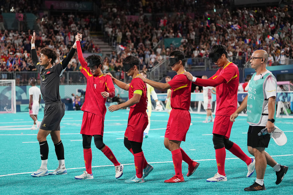 沒(méi)有華麗的踩單車(chē)過(guò)人,沒(méi)有炫酷的驚天倒鉤……除兩隊(duì)門(mén)將外,八名球員戴著黑色眼罩,在一次次奔跑、沖撞、摔倒、起身的動(dòng)作中循環(huán)往復(fù);比賽中,為不影響運(yùn)動(dòng)員發(fā)揮,現(xiàn)場(chǎng)觀眾只有在進(jìn)球之后才能歡呼喝彩。