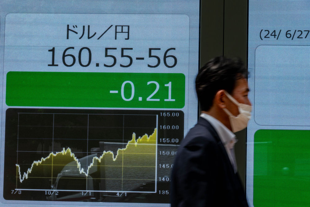 6月27日,行人走過(guò)日本東京一處顯示實(shí)時(shí)匯率的電子屏幕。新華社記者張笑宇攝