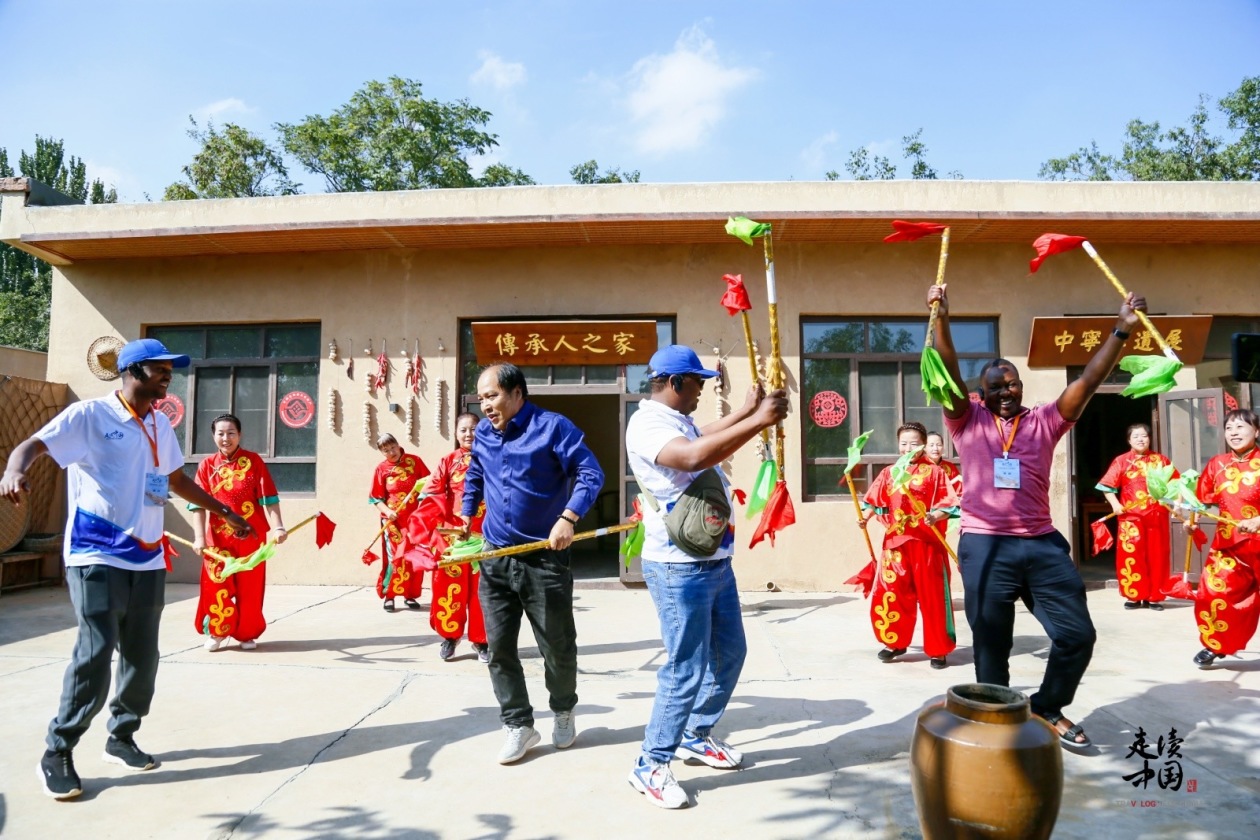 據(jù)介紹,黃羊古落有兩項(xiàng)國家級非遺稱號:黃羊錢鞭和中寧蒿子面制作工藝,且黃羊錢鞭已成為村民鍛煉的一種方式。外國記者也在充滿激情的音樂中和村民一起舞動起來。津巴布韋國家電視臺總經(jīng)理喬納森·提納沃·馬瑞瓦對環(huán)球網(wǎng)記者談?wù)撈饘τ邳S羊前鞭的感受,他說:“它非常完美,我的家鄉(xiāng)也有很多舞蹈,但與這里的不同。我喜歡這種形式的舞蹈,步伐統(tǒng)一,表現(xiàn)出了與眾不同的活力?!蓖瑫r,喬納森強(qiáng)調(diào)了黃羊錢鞭這類非物質(zhì)文化遺產(chǎn)的重要性:“這類舞蹈保持了文化的完整性。它歷史悠久,流傳至今,也將延續(xù)到未來。它讓這種蓬勃的生命力會一直存在于孩子們的記憶里?!?/p>