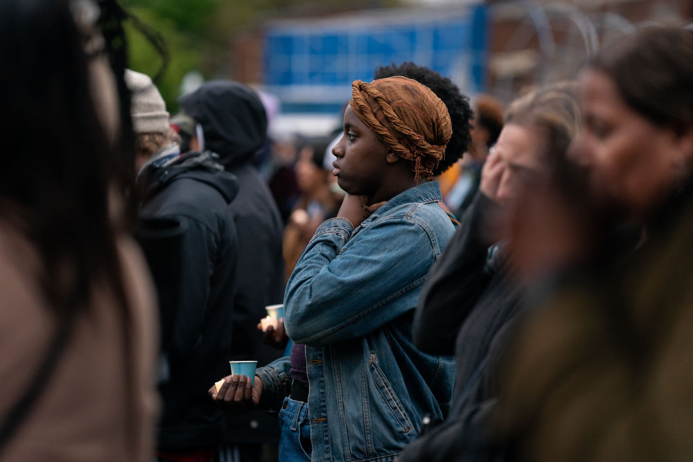 2022年5月25日,在美國明尼蘇達州明尼阿波利斯市,人們參加哀悼活動,紀念弗洛伊德遇害兩周年。2020年5月25日,“無法呼吸”的非洲裔男子喬治·弗洛伊德死于白人警察膝下,成為美國人權(quán)史上的恥辱一頁。新華社發(fā)(本·布魯爾攝)