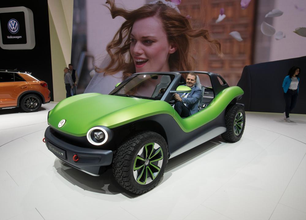 這是2019年3月6日在瑞士日內(nèi)瓦國(guó)際車(chē)展上拍攝的大眾汽車(chē)公司的全地形電動(dòng)概念車(chē)ID.BUGGY。新華社記者徐金泉攝
