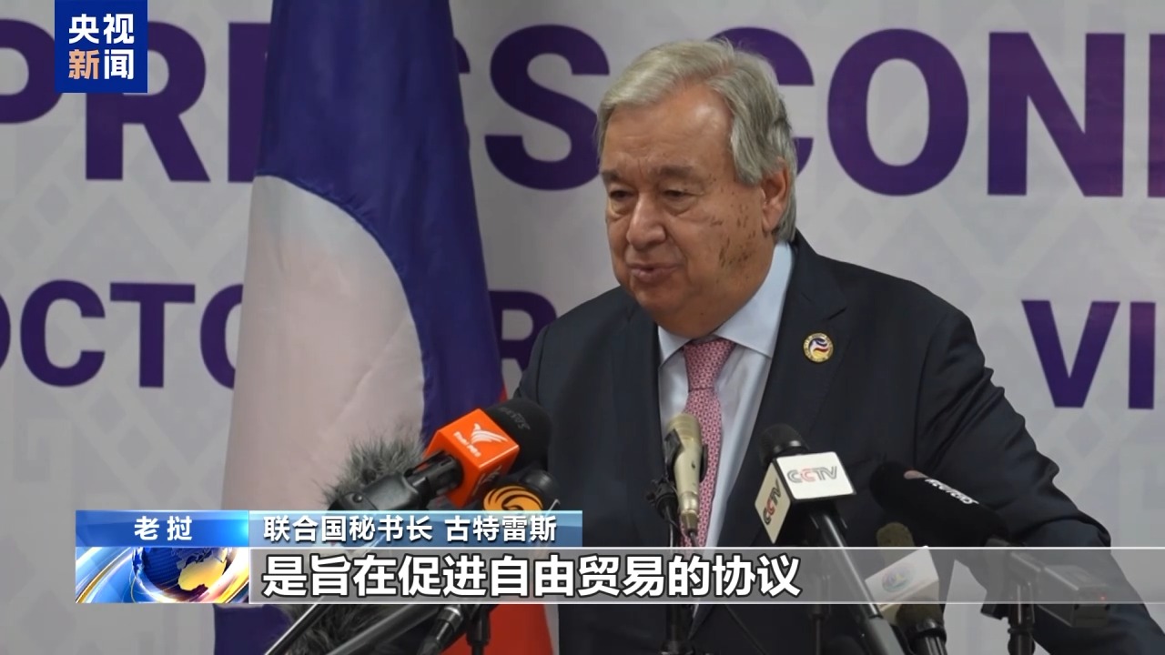 聯(lián)合國秘書長古特雷斯在回答總臺記者提問時贊賞中國—東盟自貿(mào)區(qū)3.0版,表示此次升級將促進(jìn)全球自由貿(mào)易和經(jīng)濟(jì)增長。