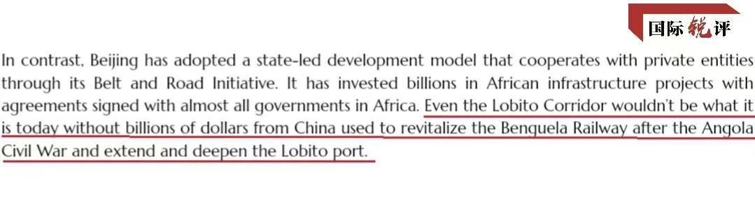 黎文濤認(rèn)為,美國(guó)試圖把“洛比托走廊”包裝成美歐為非洲基建作出的貢獻(xiàn),完全不符合事實(shí)。因?yàn)樗暮诵墓羌苤袊?guó)早已搭好,中國(guó)才是名副其實(shí)的最大貢獻(xiàn)者。“洛比托走廊”官網(wǎng)上也有這樣一段話:“如果沒(méi)有中國(guó)投入數(shù)十億美元重建本格拉鐵路、擴(kuò)建洛比托港口,‘洛比托走廊’就沒(méi)有當(dāng)今的模樣?!?/p>