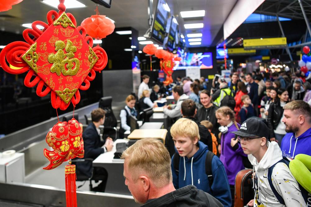 9月28日,在俄羅斯韃靼斯坦共和國喀山國際機(jī)場(chǎng),搭乘喀山至上海直飛航班的乘客辦理值機(jī)。新華社記者曹陽攝