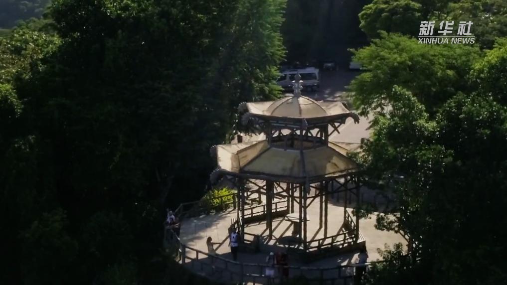 在科爾科瓦多山上的蒂茹卡國(guó)家公園里,有一座玲瓏別致的中式?jīng)鐾?,八角飛檐上雕刻著色彩艷麗的飛龍。這座涼亭是里約地方政府為表彰華工在巴西用中國(guó)茶籽培育茶樹(shù)的功績(jī)而修建?,F(xiàn)在,中國(guó)亭已成為中巴兩國(guó)人民友誼的象征。