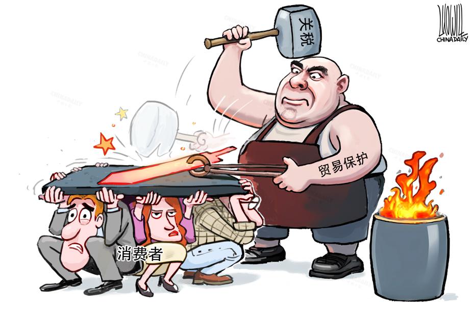 貿(mào)易保護主義下的沉重關稅,最后買單的都是本國消費者。(作者:中國日報 羅杰)