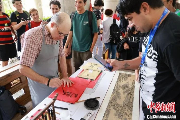 當(dāng)?shù)貢r(shí)間2024年4月18日,巴西里約孔子學(xué)院舉行“國(guó)際中文日”慶祝活動(dòng)。陳海琪 攝