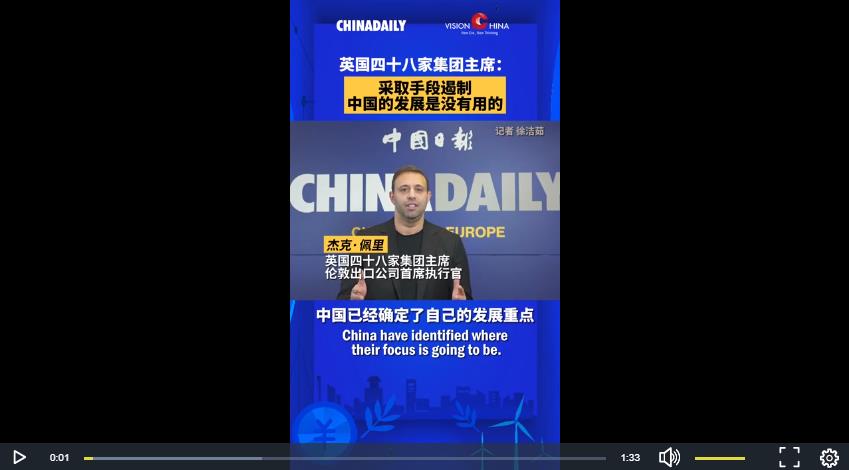 英國四十八家集團(tuán)主席:采取手段遏制中國的發(fā)展是沒有用的
