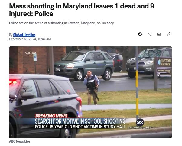 中新網(wǎng)12月18日電 據(jù)美國廣播公司(ABC)報(bào)道,當(dāng)?shù)貢r(shí)間17日,警方稱,美國馬里蘭州巴爾的摩發(fā)生大規(guī)模槍擊事件,造成1人死亡,9人受傷。