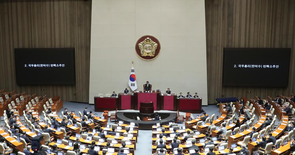 在韓國總統(tǒng)尹錫悅遭國會彈劾、國務總理韓德洙代行總統(tǒng)職權僅13天后,韓國國會27日下午以192票贊成通過針對韓德洙的彈劾動議案。