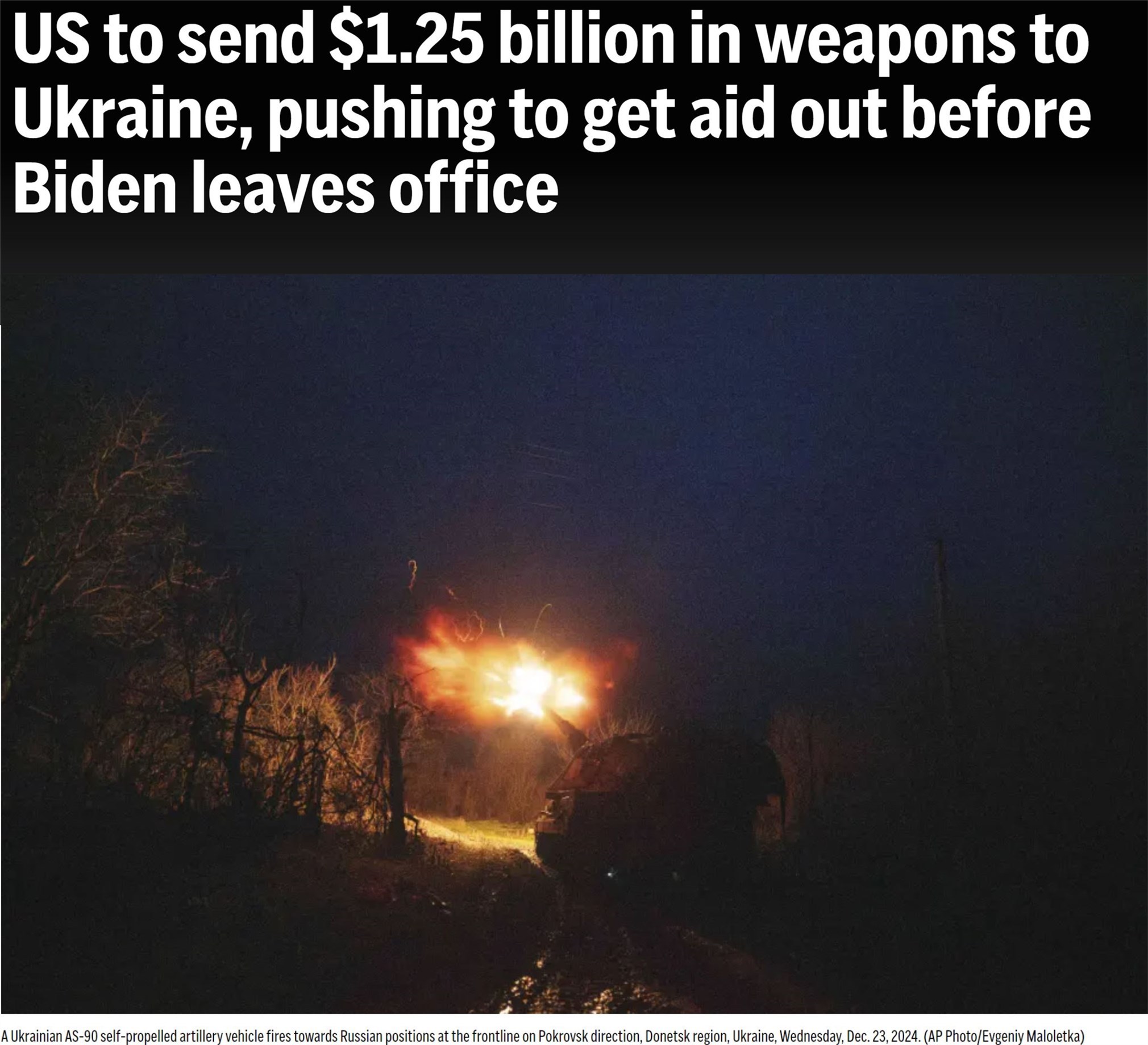 美聯(lián)社28日援引多名匿名官員的話報道稱,拜登政府計劃在明年1月卸任前再向烏克蘭提供12.5億美元的新一輪軍事援助,其中包括用于“國家先進地空導彈系統(tǒng)”和“鷹”式防空導彈系統(tǒng)的彈藥、“毒刺”防空導彈以及155毫米和105毫米口徑火炮炮彈等。
