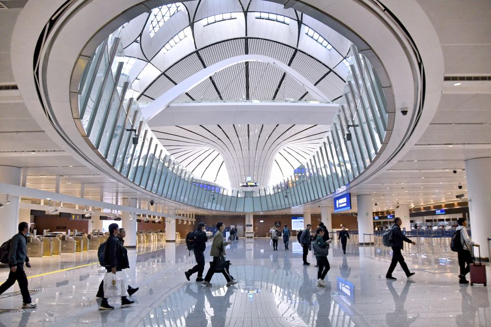 2024年12月27日,外國游客在北京大興機場邊檢大廳準備入境。新華社記者 鞠煥宗 攝