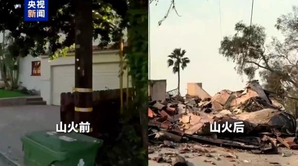 從對(duì)比畫面可以看出,到處都是殘?jiān)珨啾诤蜔龤У钠?,大量建筑外墻被燒黑,還有不少房屋被大火夷為平地。