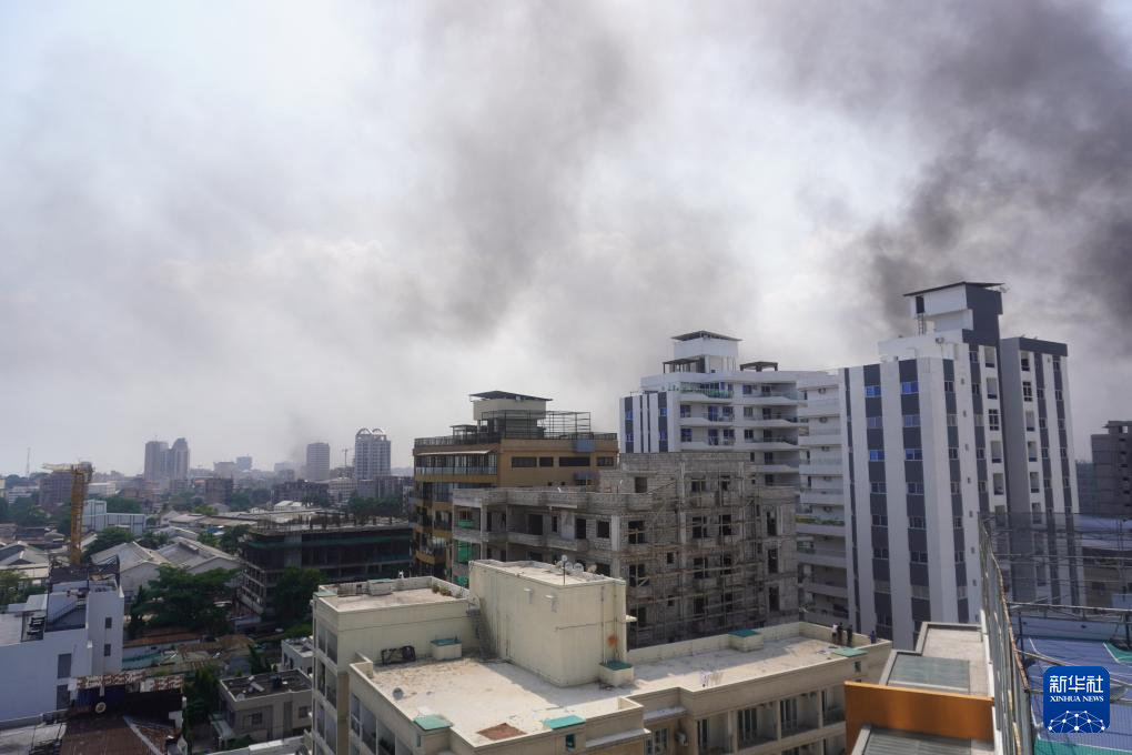 1月28日,在剛果(金)首都金沙薩,示威人員焚燒輪胎的黑煙籠罩城區(qū)。新華社記者 史彧 攝