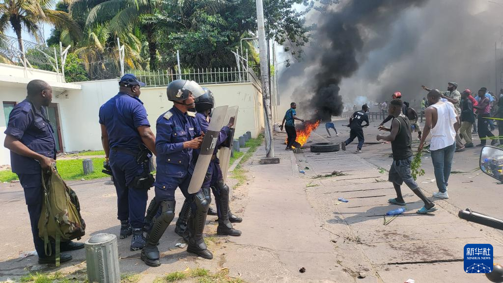 剛果(金)首都金沙薩多個(gè)地區(qū)28日爆發(fā)示威活動(dòng)。新華社記者看到,示威人員縱火和洗劫了多個(gè)外國使館。當(dāng)?shù)鼐揭淹ㄟ^釋放催淚瓦斯等方式驅(qū)散示威人員。