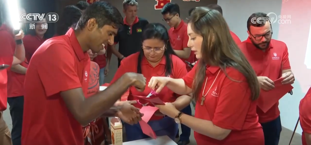 當(dāng)?shù)貢r(shí)間1月28日一大早,也就是北京時(shí)間的除夕夜,巴西東北部小鎮(zhèn)阿波迪打破了往日的平靜。很多當(dāng)?shù)孛癖娭?,他們的中?guó)朋友即將舉行春節(jié)慶?;顒?dòng),因而早早地來(lái)到了活動(dòng)現(xiàn)場(chǎng)。在現(xiàn)場(chǎng),中國(guó)農(nóng)業(yè)技術(shù)人員不僅貼上了春聯(lián)、掛上了福字,還邀請(qǐng)當(dāng)?shù)孛癖娨黄鹂创和?、包餃子、剪窗花、?xiě)春聯(lián),這也是很多當(dāng)?shù)孛癖姷谝淮螀⒓哟汗?jié)慶?;顒?dòng)。