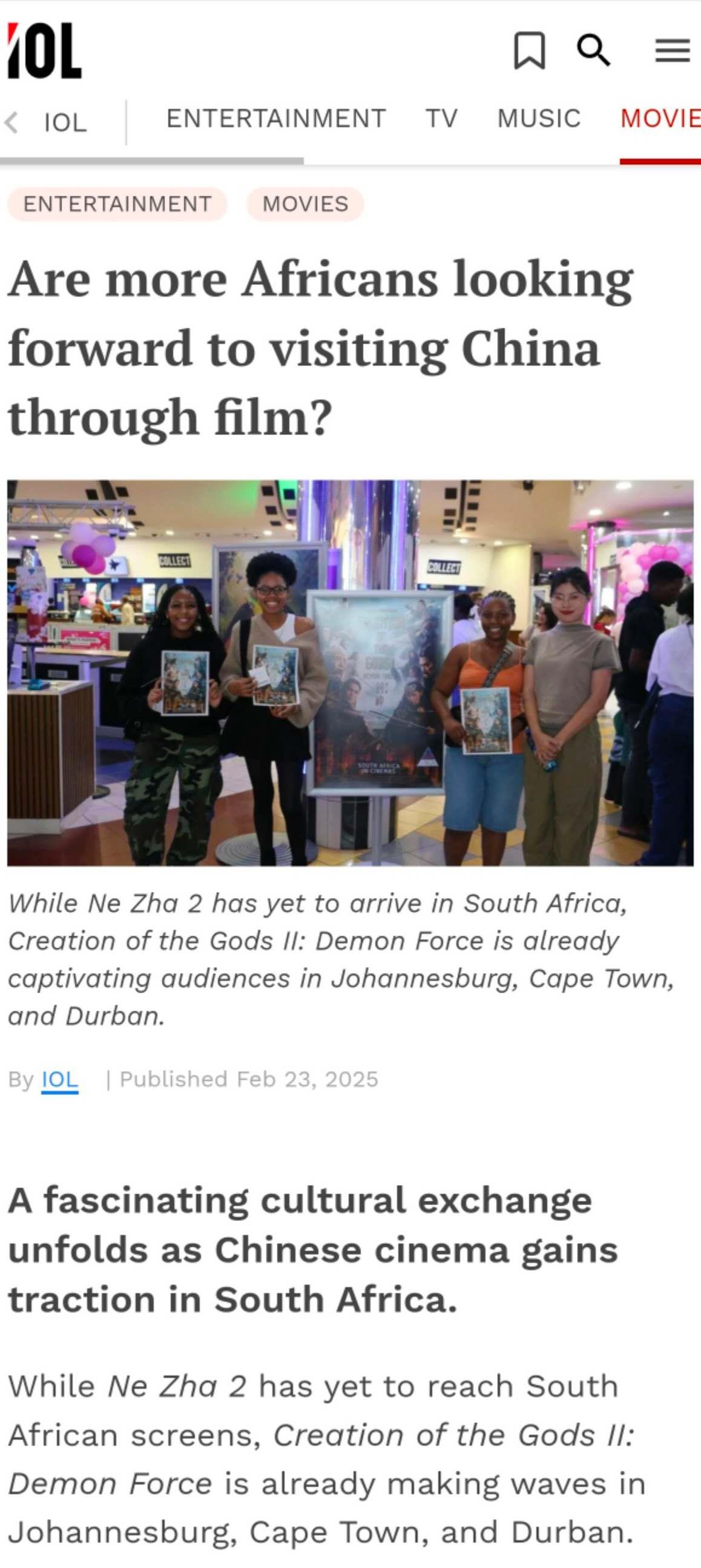 電影連接世界,這一次,非洲大陸期待著《哪吒2》的到來,曼德拉廣場上舞動著南非版的“魔童鬧海”——非洲時刻已到——This time for Africa!
