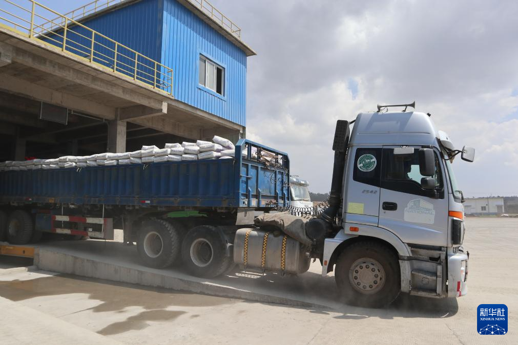 3月5日,在埃塞俄比亞萊米國家水泥廠,一輛裝滿水泥的卡車即將離開廠區(qū)。新華社記者 劉方強(qiáng) 攝