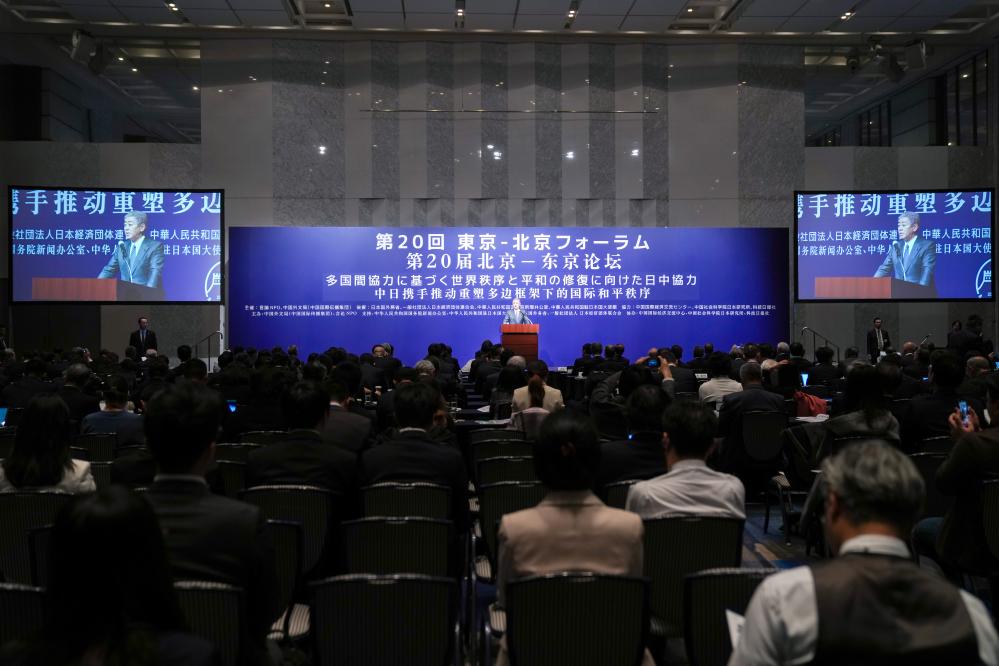 2024年12月4日,日本外務(wù)大臣巖屋毅在日本東京舉行的論壇上致辭。新華社記者張笑宇攝