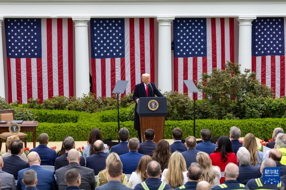4月2日,美國總統(tǒng)特朗普在華盛頓白宮就關(guān)于所謂“對等關(guān)稅”的行政令發(fā)表講話。新華社記者 胡友松 攝