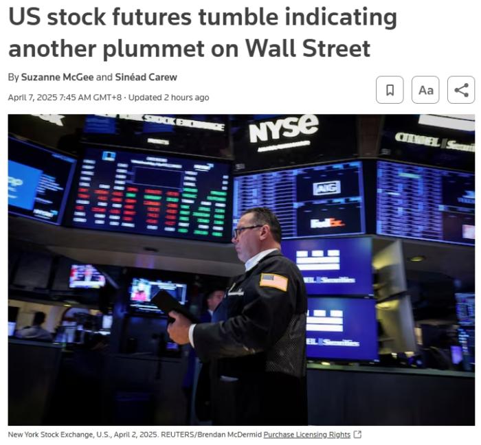 美東時間4月6日下午,美國股指期貨開盤暴跌,其中納斯達克100指數期貨在波動中下跌約5.8%,標普500指數期貨下跌約4.8%。美媒稱,當前,關稅引發(fā)的市場混亂仍未結束,這對投資者乃至整個經濟而言都是“不祥之兆”。