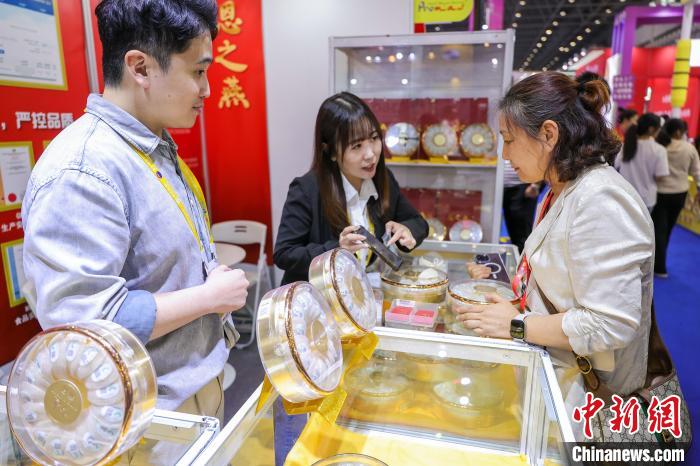 4月14日,在第五屆中國(guó)國(guó)際消費(fèi)品博覽會(huì)上,馬來(lái)西亞燕窩吸引參觀者駐足挑選。中新社記者 駱云飛 攝