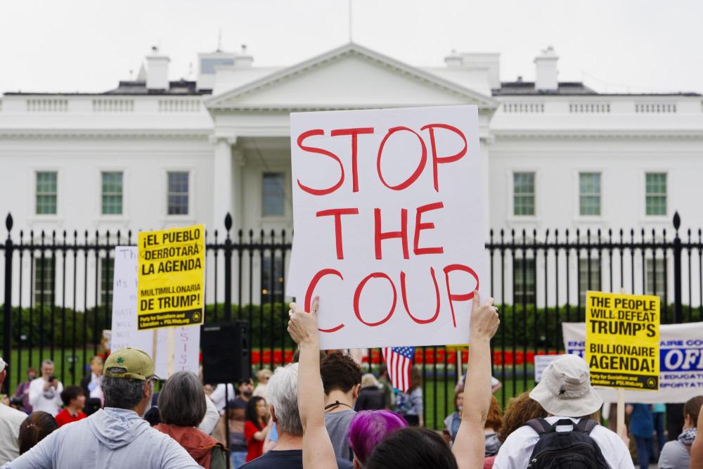 4月19日,人們在美國首都華盛頓白宮門前參加抗議活動(dòng)。美國多地19日舉行抗議活動(dòng),首都華盛頓、紐約、舊金山、波士頓等城市的民眾走上街頭,抗議現(xiàn)政府大規(guī)模裁員、加征關(guān)稅、驅(qū)逐移民等政策。新華社發(fā)(亞倫攝)