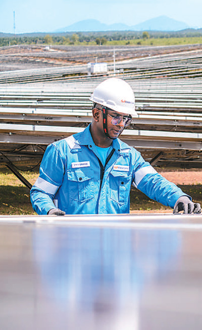 馬來西亞吉打州南部,由中企承建并運營的瓜拉基蒂光伏電站上,工人在巡檢設備。張紋綜攝(新華社發(fā))