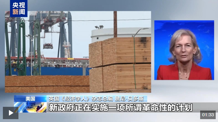 近日,在美國(guó)有線電視臺(tái)的一檔節(jié)目中,英國(guó)《經(jīng)濟(jì)學(xué)人》雜志總編詹尼·貝多斯表示,美國(guó)大幅加征關(guān)稅實(shí)則是在“自取滅亡”。
